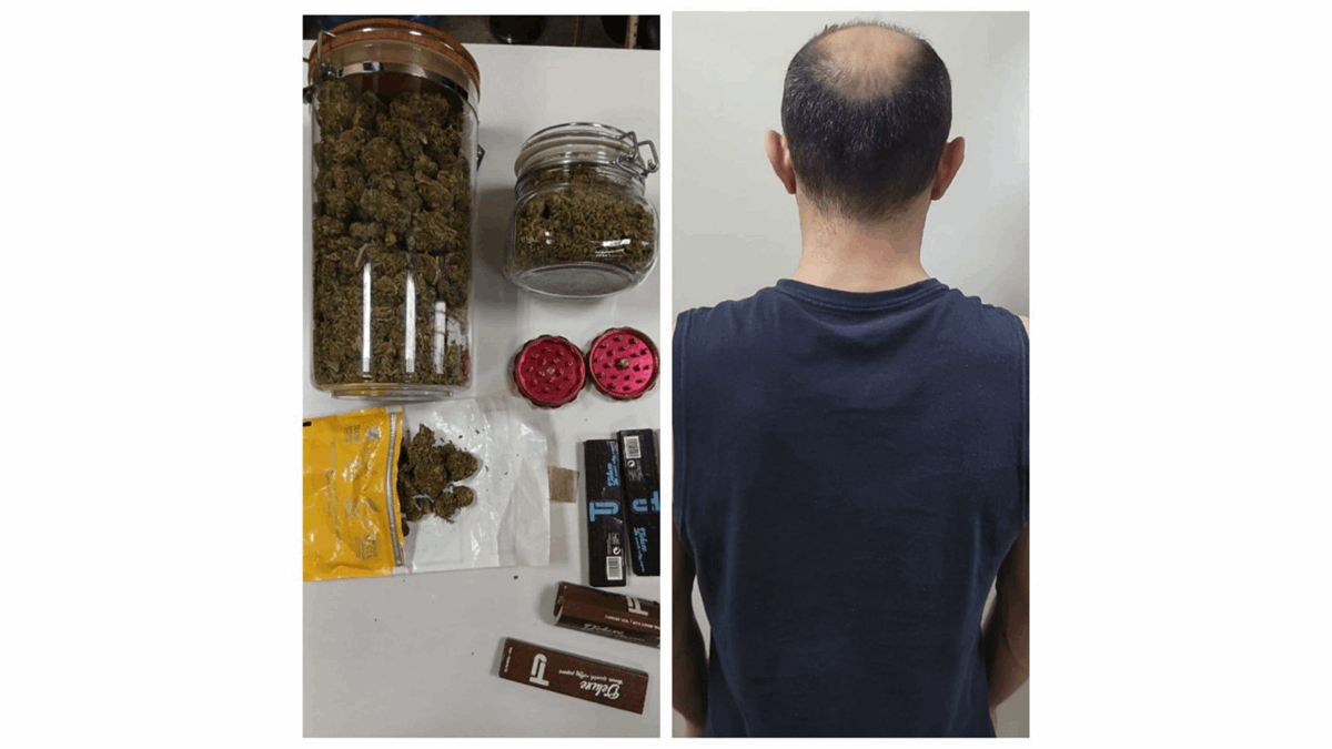 بتفتيش منزله، تم ضبط /7/ نبتات “ماريجوانا” مزروعة على الشرفة، وكميّة من المادة ذاتها مخزّنة داخل وعاءَين زجاجيَّين، وأدوات تُستَخدَم لتعاطي المخدِّرات.