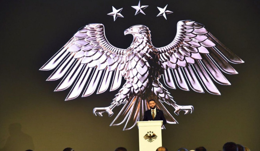 وأضاف أن احتفال اليوم عنوان لهوية سوريا وأبنائها بمرحلتها التاريخية الجديدة، هوية تستمد سماتها من هذا الطائر الجارح (العقاب الذهبي) وتنهل منه القوة والعزم والسرعة والاتقان والابتكار في الأداء.