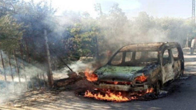 اندلع حريق في سيارة على أوتوستراد الغازية – الزهراني، نتيجة ماس كهربائي.