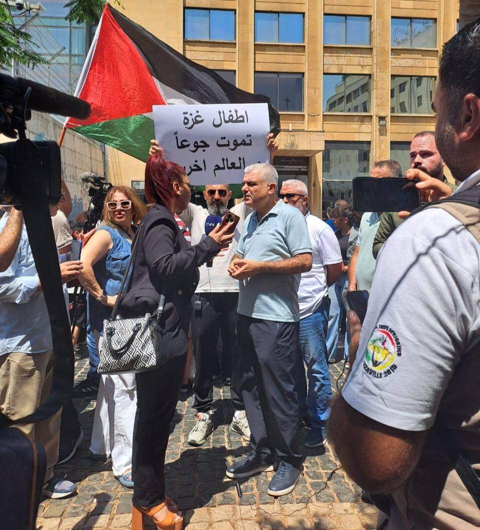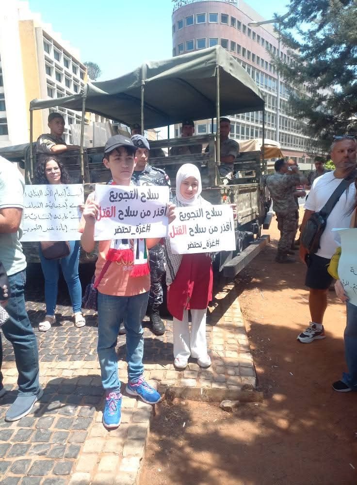 نظم ناشطون، اليوم الأربعاء، وقفة تضامنية ضد تجويع أهل قطاع غزة في وسط بيروت، رفع فيها المشاركون لافتات تطالب بوقف المجاعة وإنهاء الإبادة، وتستنكر صمت العالم تجاه ما يجري في القطاع.