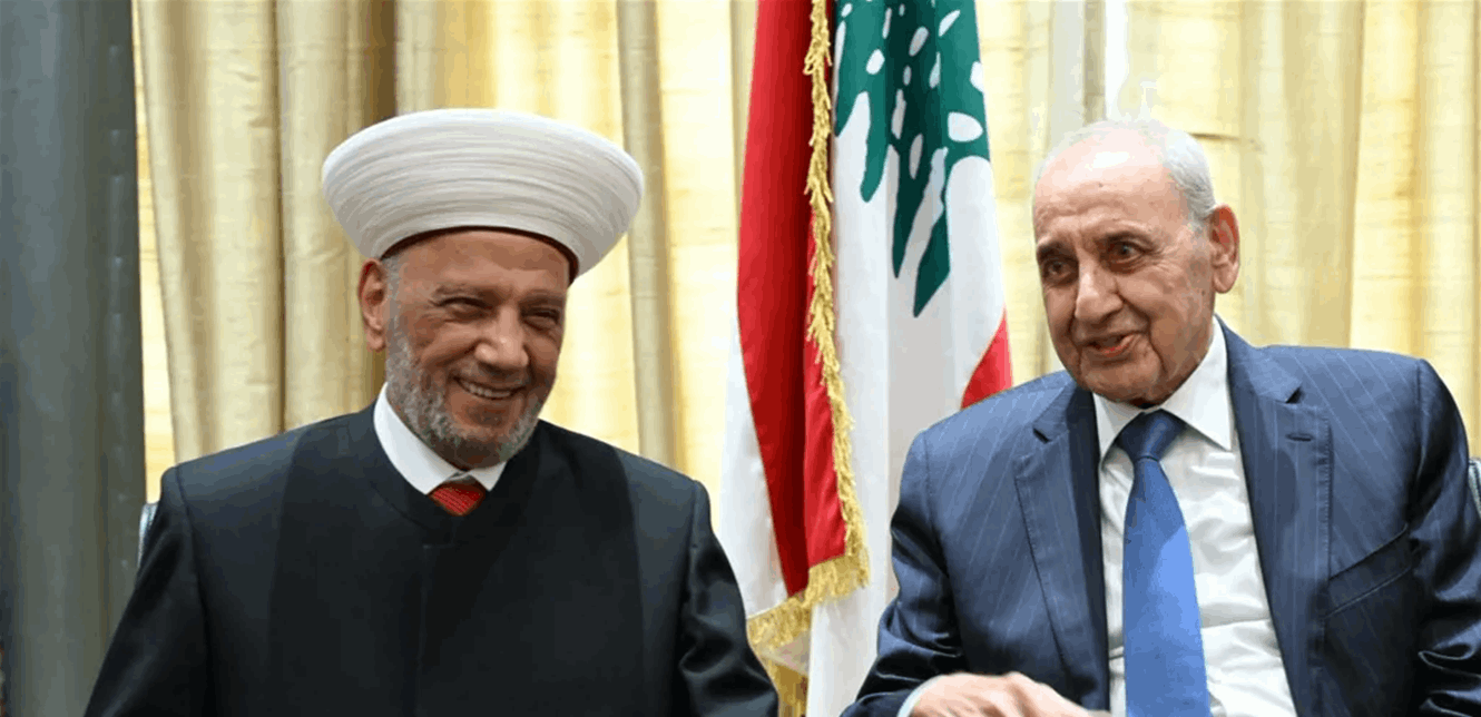إستقبل رئيس مجلس النواب نبيه بري في مقر الرئاسة الثانية في عين التينة، مفتي الجمهورية الشيخ عبد اللطيف دريان مع وفد موسع من دار الفتوى ومفتي المناطق ضم: مفتي طرابلس والشمال الشيخ محمد طارق إمام، رئيس المحاكم الشرعية السنية في لبنان الشيخ محمد عساف،أمين الفتوى الشيخ أمين الكردي، مفتي زحلة والبقاع الشيخ علي الغزاوي، مفتي صيدا وأقضيتها الشيخ سليم سوسان، مفتي بعلبك والهرمل الشيخ بكر الرفاعي، مفتي راشيا الشيخ وفيق حجازي، مفتي عكار الشيخ زيد محمد بكار زكريا، مفتي حاصبيا ومرجعيون الشيخ حسن دلي، مفتي صورالشيخ مدرار حبال، أمين الفتوى في طرابلس الشيخ بلال بارودي، ومدير العلاقات العامة والإعلام في دار الفتوى خلدون قواص.