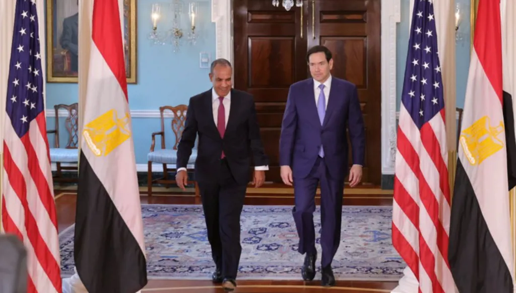 التقى وزير الخارجية المصري بدر عبد العاطي بنظيره الأميركي ماركو روبيو في واشنطن، حيث بحثا سبل تطوير العلاقات الثنائية الوثيقة بين مصر والولايات المتحدة، وتبادلا الرؤى حول عدد مع القضايا الإقليمية والدولية ذات الاهتمام المشترك.
