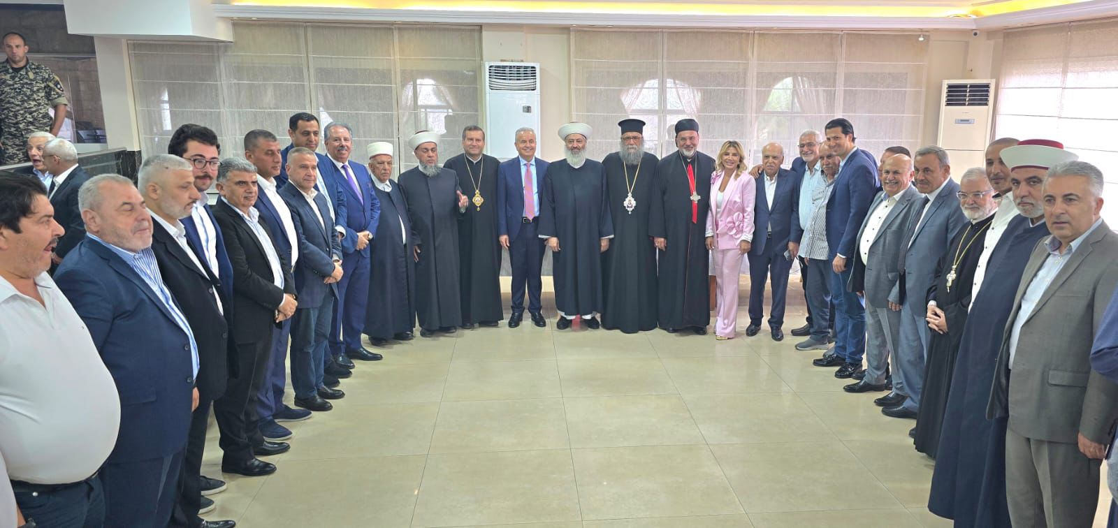 وقال درغام: سيادةَ المطران باسيليوس منصور الذي يُجسّد بإيمانهِ وتواضعهِ معاني الأبوةَ الروحيةَ الصادقة، وسماحةَ المفتي زيد بكار زكريا الذي نعتزُّ بعلمهِ واعتدالهِ وانفتاحهِ، وبدورهِ الوحدوي الجامع في تعزيزِ الحوارِ والحفاظِ على العيشِ المشتركِ في أصعبِ الظروف.