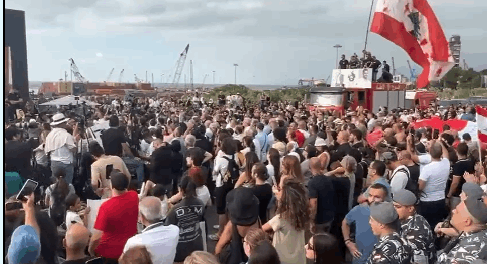 وعند تمام السادسة مساءً أطلقت السفن صافراتها وارتفعت الرافعات في مرفأ بيروت إجلالاً لأرواح الشهداء.