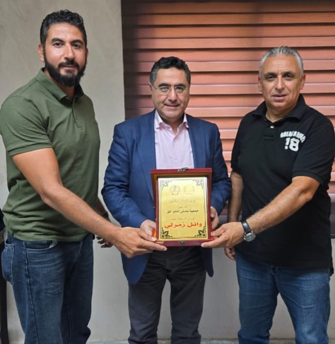 زار رئيس تضامن الأندية الرياضية لكرة القدم في الشمال أحمد فردوس والناشط الرياضي عشير حمامي رئيس إتحاد بلديات الفيحاء المهندس وائل زمرلي في مقر الإتحاد حيث قدم حمامي درعا تقديريا للمهندس وائل زمرلي على مشاركته في المناسبة الرياضية في ذكرى عيد الجيش ،