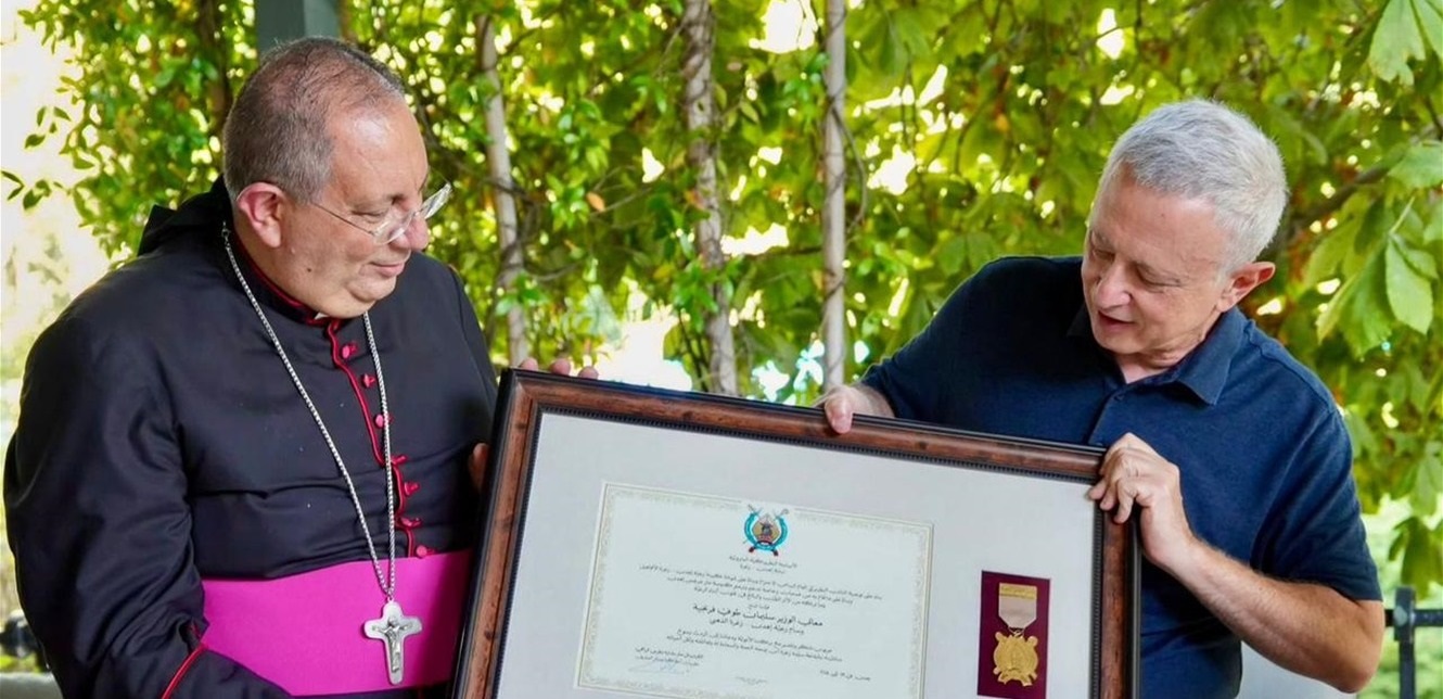 إلى ذلك، كُتب على الدرع الذي جرى تقديمه لفرنجيه التالي: الأبرشية البطريركيّة المارونيّة نيابة إهدن – زغرتا بناء على توصية النائب البطريركي العام السامي الاحترام وبناءً على شهادة كهنة رعيّة إهدن – زغرتا الأفاضل، وبناءً على ما قام به من خدمات وخاصة تدعيم وترميم كنيسة مار جرجس إهدن وما تركه من الأثر الطيّب والبالغ في قلوب أبناء الرعيّة، فإننا نمنح معالي الوزير سليمان طوني فرنجيه وسام رعيّة إهدن – زغرتا الذهبي عربون شكر وتقدير مع بركتنا الأبويّة ودعائنا إلى الربّ يسوع سائلينه بشفاعة سيّدة زغرتا أن يمنحه النعمة والسعادة له ولعائلته ولكل أحبائه”.
