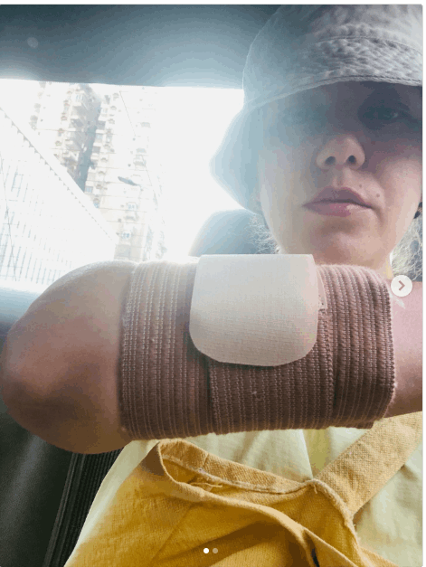 وظهرت رحمة في صور نشرتها على حسابها وهي تلفّ يدها المُصابة برباط طبّي، وعلّقت على الصور قائلةً: “الحمد لله دائماً وأبداً”.