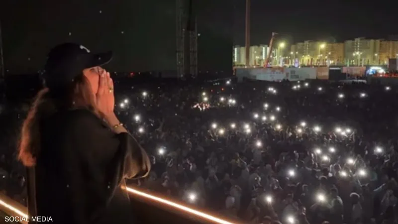 وحظيت أنغام بترحيب واسع وحفاوة عند ظهورها المفاجئ، حيث تابعت العرض من الصفوف الأولى وهي تبدو في حالة صحية جيدة.