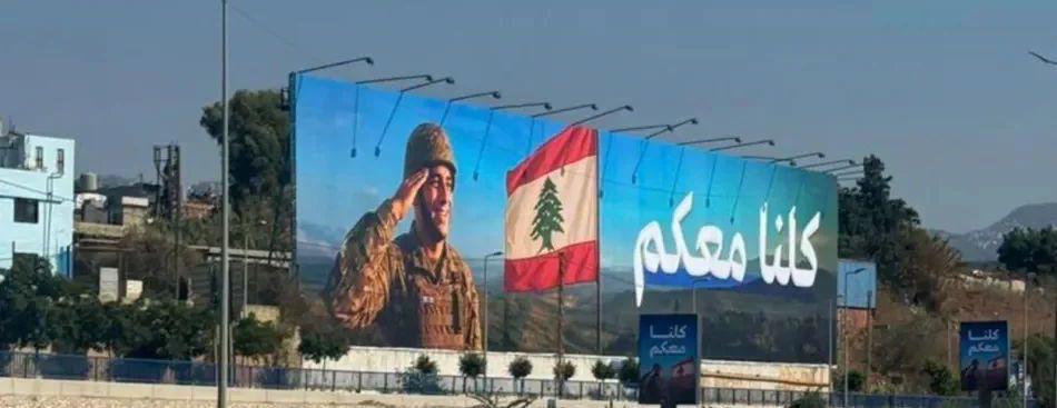 رُفعت لافتة كبيرة على طريق المطار، داعمة للجيش، وحملت اللافتة عبارة “كلنا معكم”، مع صورة لجنديّ يُقدّم التحيّة للعلم اللبنانيّ.