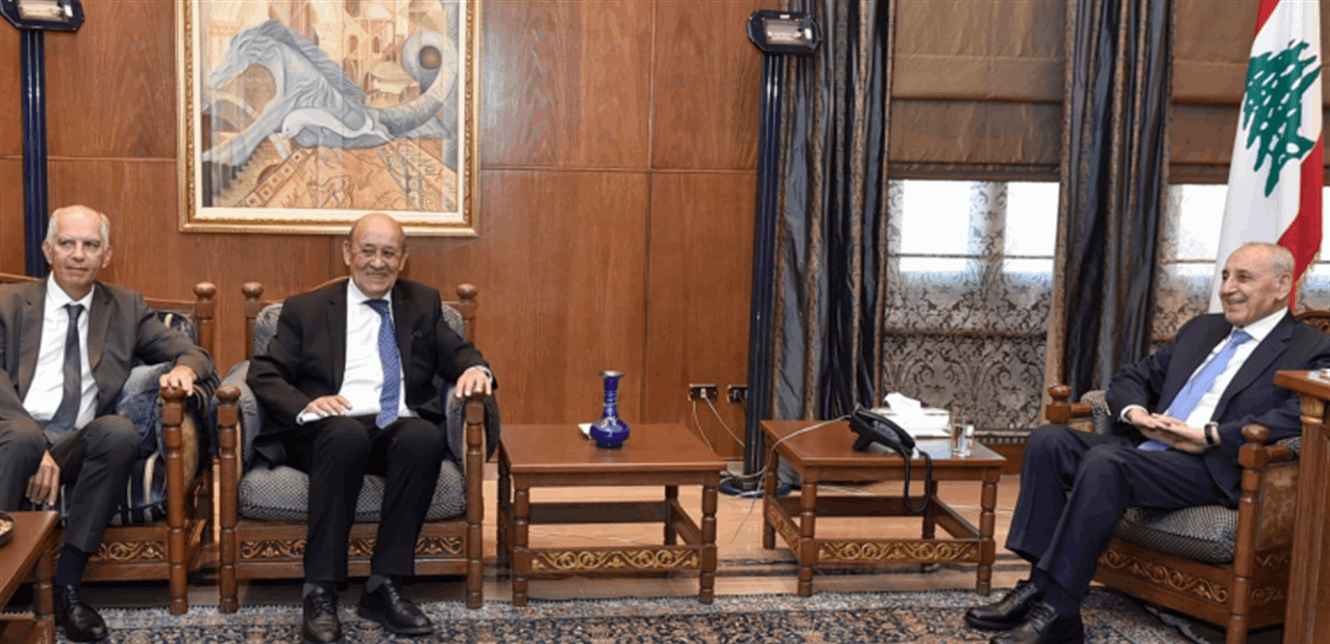 استقبل رئيس مجلس النواب نبيه بري في مقر الرئاسة الثانية في عين التينة، الموفد الرئاسي الفرنسي جان إيف لودريان والوفد المرافق، في حضور السفير الفرنسي في لبنان هيرفية ماغرو ومستشار رئيس المجلس الدكتور محمود بري. وتم عرض لتطورات الاوضاع في لبنان والمنطقة والمستجدات السياسية والعلاقات الثنائية بين لبنان وفرنسا.