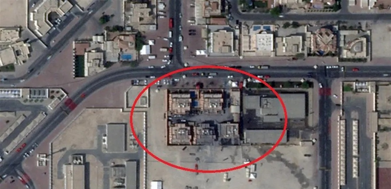 وأظهرت الصور الملتقطة بعد الهجوم وقوع أضرار في خمسة مبانٍ داخل المجمع، بينما لم تتأثر الأبنية المجاورة بشكل كبير. وقد تعرض المبنى الواقع في أسفل الزاوية اليمنى للصورة لأشد الأضرار، إلى جانب المبنى المجاور له على اليسار.