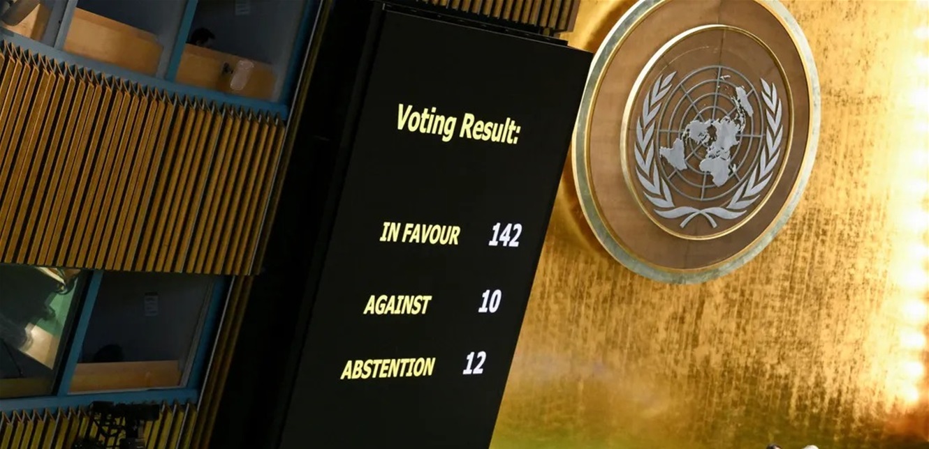 وحظي الإعلان بتأييد 142 دولة، في مقابل معارضة 10 دول بينها إسرائيل والولايات المتحدة، بينما امتنعت 12 دولة أخرى عن التصويت.