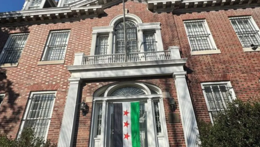 بعد نحو 11 سنة على إغلاقها، رفع العلم السوري على مبنى السفارة السورية في واشنطن.