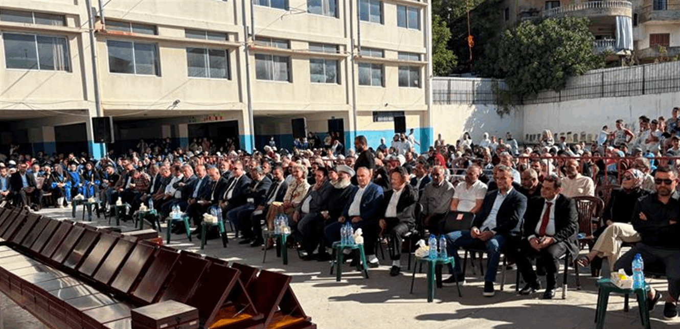 الاحتفال الأول كان مخصصًا لتدشين المدرسة الغربية بعد إعادة بنائها وفق المعايير الهندسية الحديثة لجهة المتانة والتجهيز والمرافق الملائمة، بما يوفّر بيئة صحية متكاملة للطلاب والأساتذة، حيث تضم المدرسة قاعات مجهزة، وحمامات حديثة، ونظام تدفئة، وطاقة شمسية، وشبكات كهربائية وإلكترونية متطورة.
