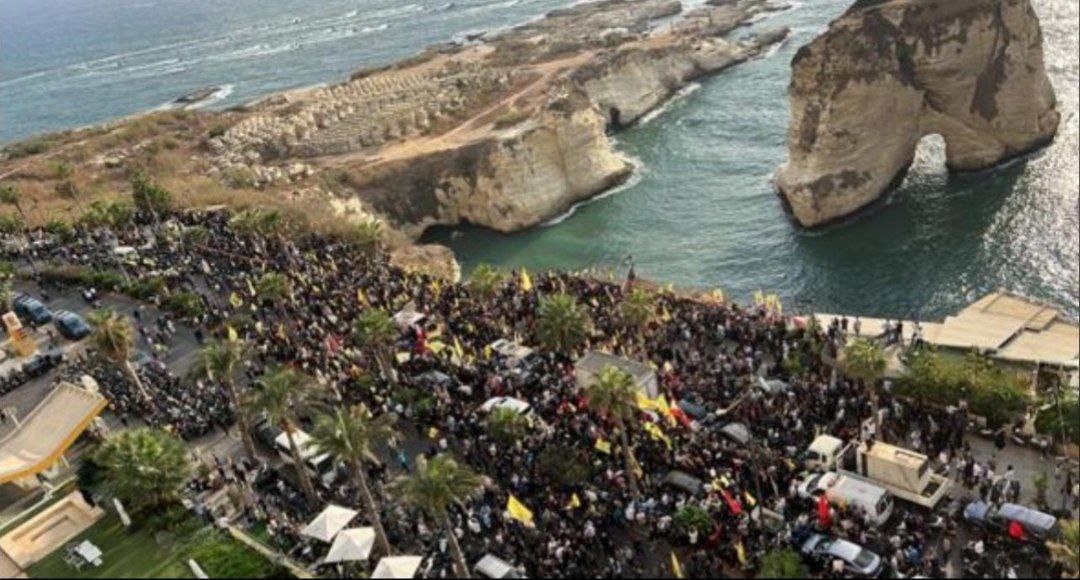 بدأت فعاليات إحياء ذكرى استشهاد السيدين حسن نصر الله وهاشم صفي الدين، قرب صخرة الروشة في بيروت.