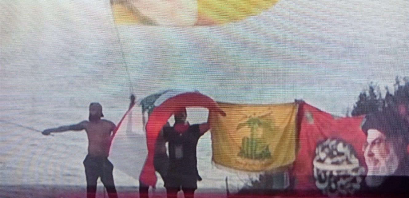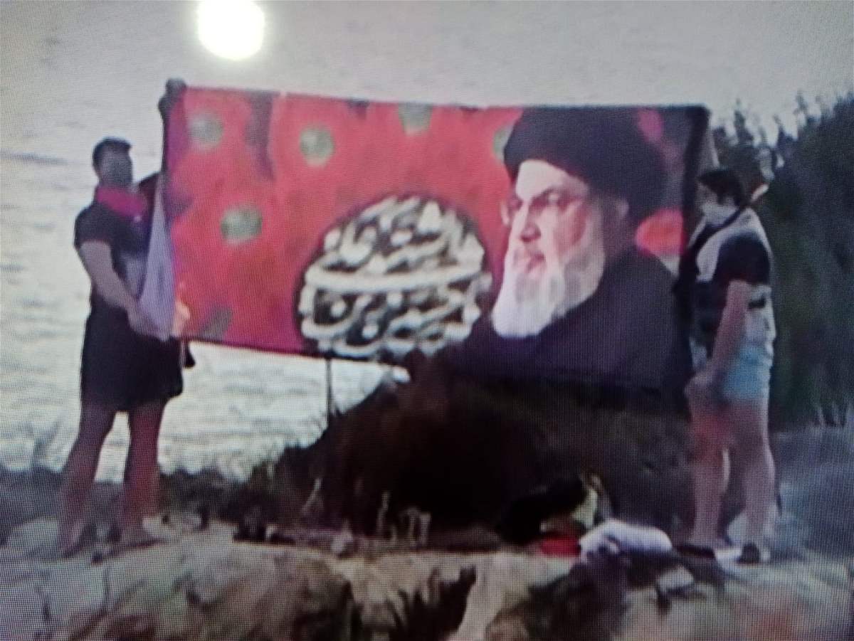 كما تمّ رفع راية أخرى حملت صورة نصرالله، بالإضافة إلى رفع العلم اللبناني بجانب الراية.