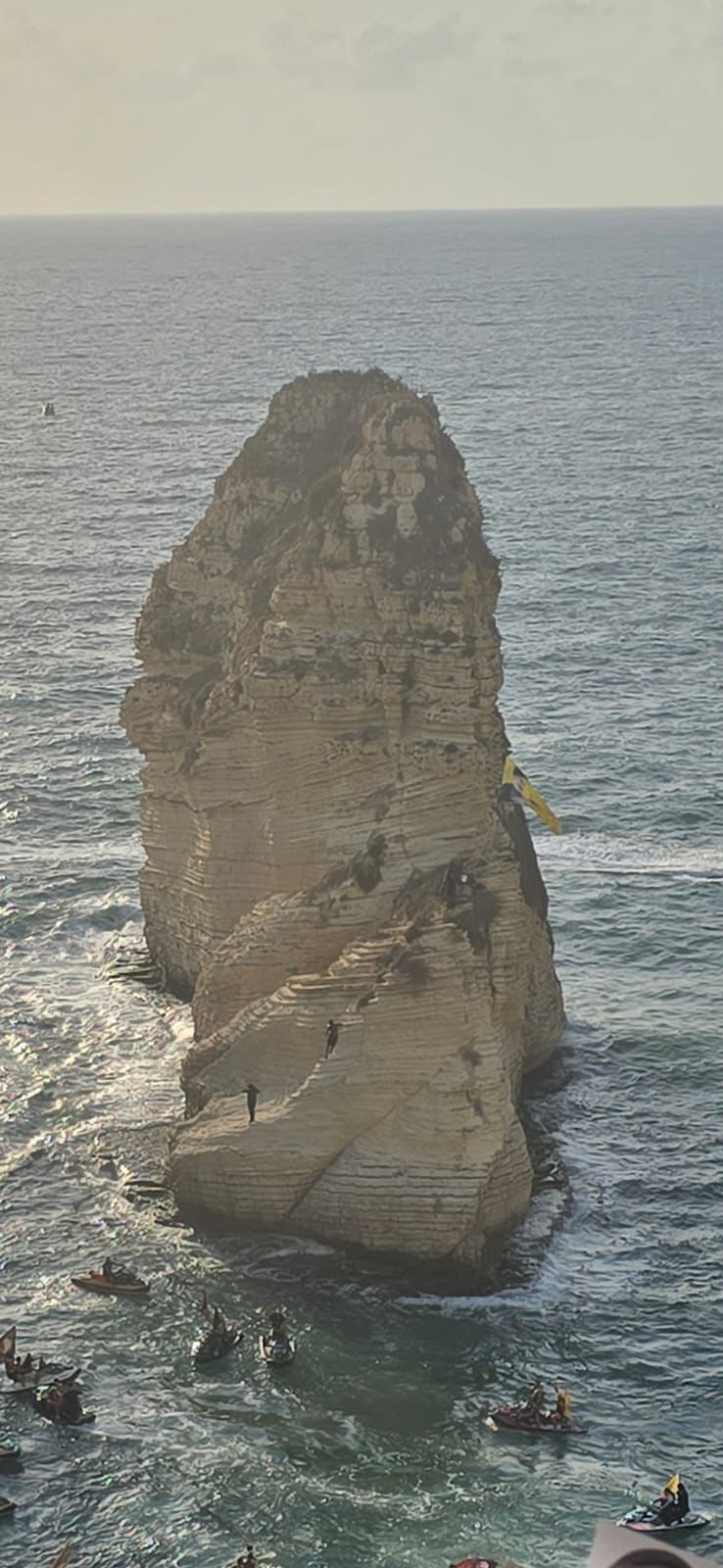 أقدم مواطنون على رفع علم يتضمن صورة الأمين العام السابق لـ “حزب الله” حسن نصرالله على صخرة الروشة في فعاليات إحياء ذكرى اغتياله والأمين العام