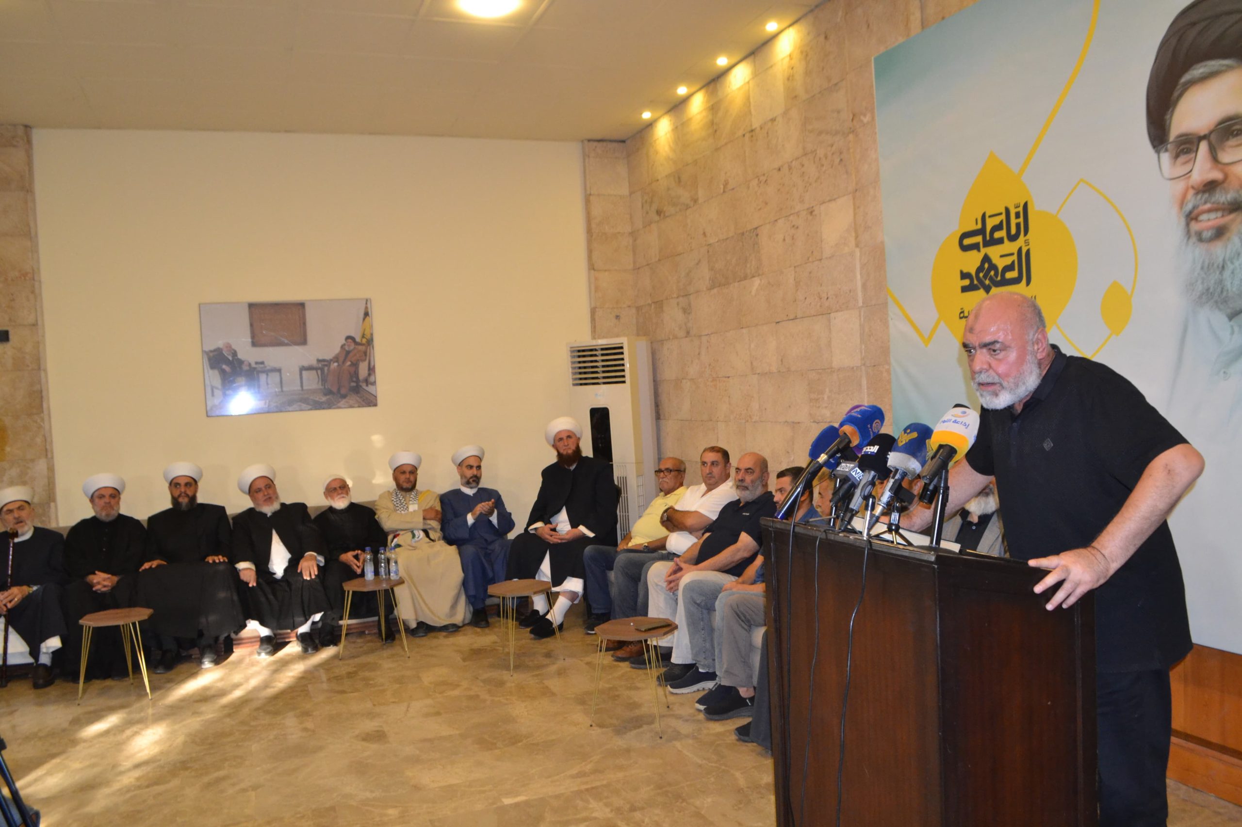 و ألقى الخير كلمةً توجه فيها بتحية الفخر و الاعتزاز الى رجال المقاومة البواسل في لبنان و الى قافلة الشهداء و في مقدمتهم سيد شهداء الأمة السيد حسن نصر الله و رفيق دربه السيد هاشم صفي الدين.
