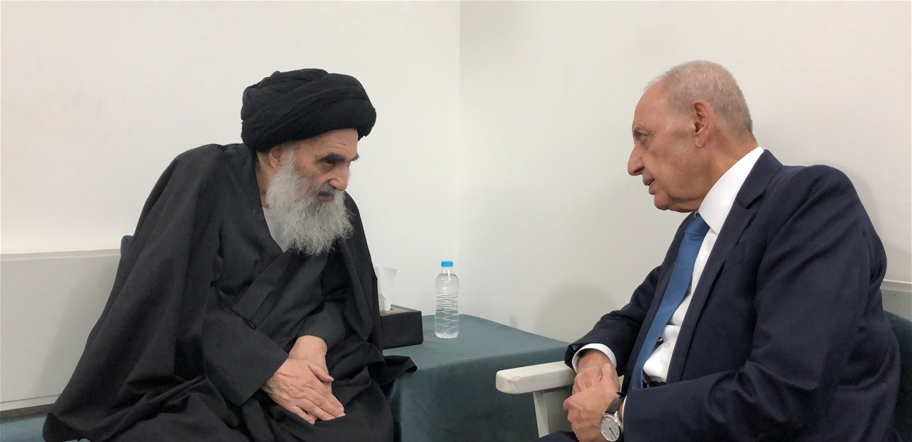اجرى رئيس مجلس النواب نبيه برّي اتصالا بالمرجع الديني الأعلى السيد علي السيستاني لتقديم واجب العزاء بوفاة عقيلته.