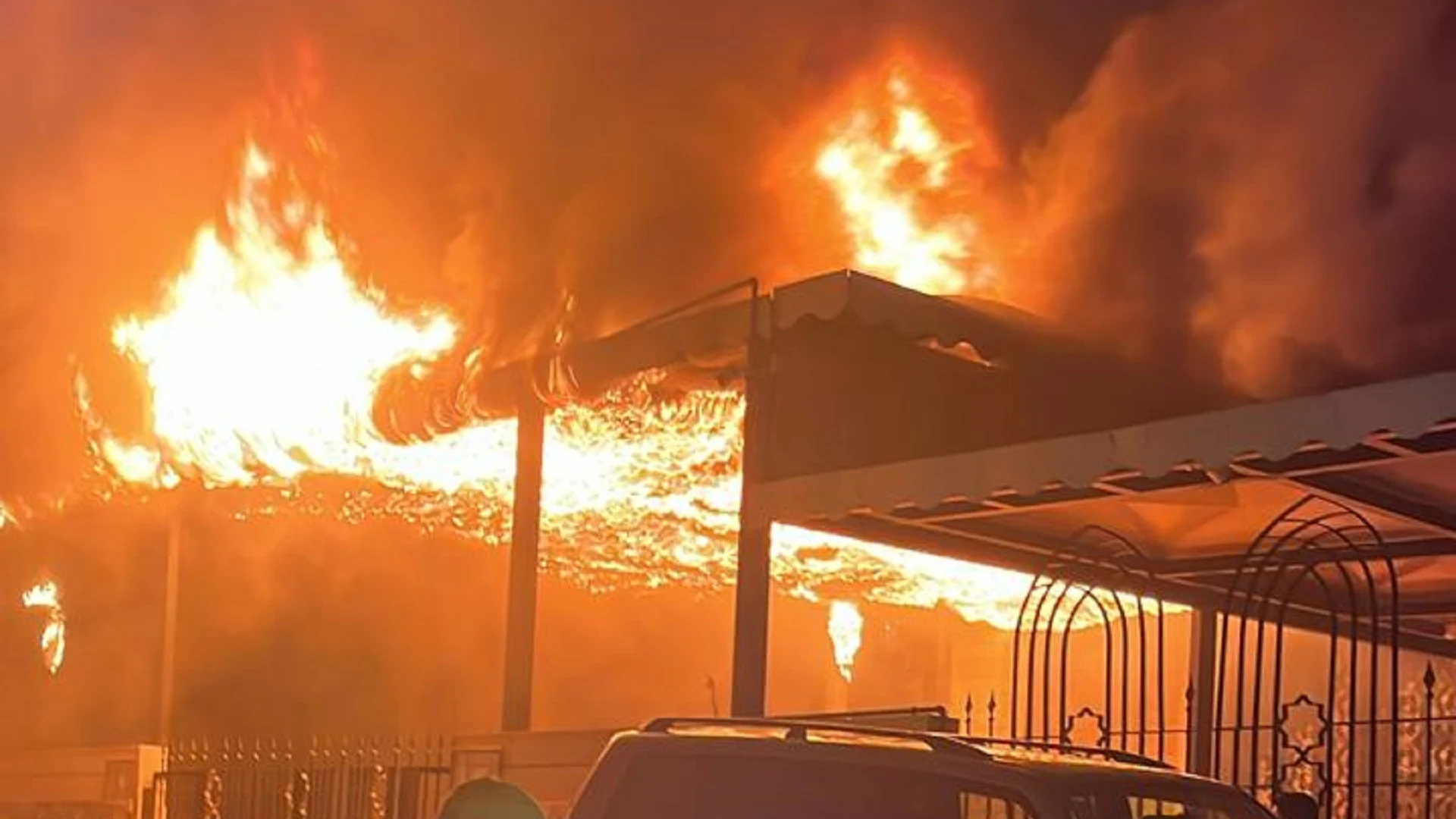 اندلع فجر اليوم حريق كبير في باحة مسجد التقوى بمدينة طرابلس، ما أدّى إلى احتراق الخيم الخارجية وامتداد النيران سريعاً في محيط المسجد.
