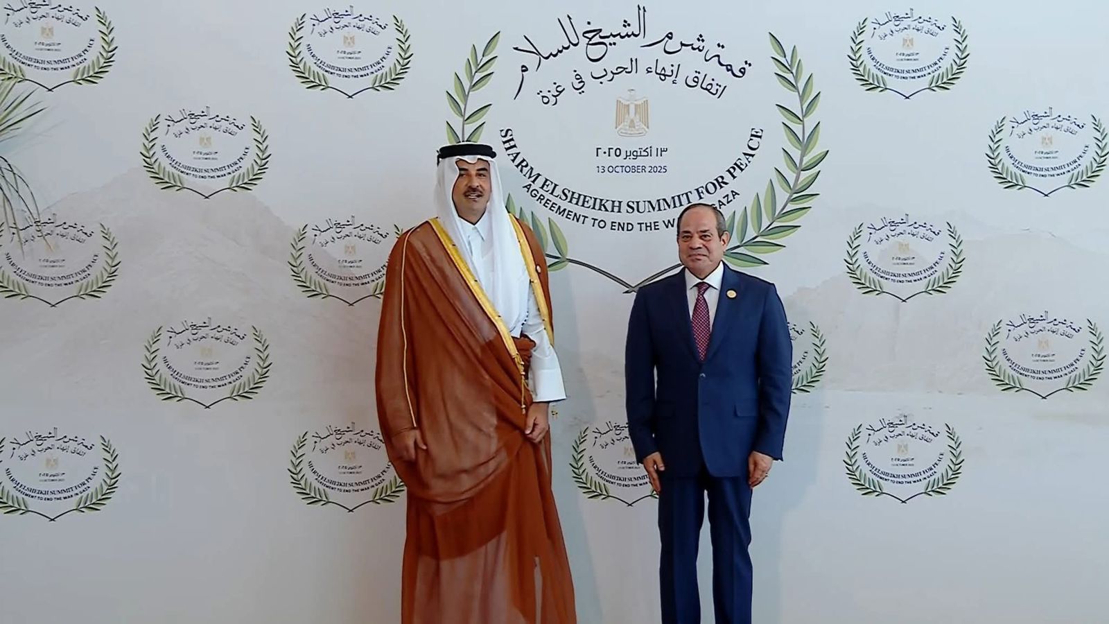 ووصل الرئيس المصري إلى مقر انعقاد قمة شرم الشيخ للسلام، حيث استقبل كلاً من أمير قطر الشيخ تميم بن حمد آل ثاني، والعاهل الأردني الملك عبدالله بن الحسين، ورئيسة الوزراء الإيطالية جورجيا ميلوني، والرئيس التركي رجب طيب أردوغان، والمستشار الألماني فريدريك ميرتس، والرئيس الفلسطيني محمود عباس.