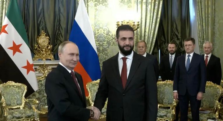باستقبالٍ مهيبٍ ولقاءٍ مطوّلٍ تخلّله غداءٌ ومزاح، استُقبل الرئيس السوري أحمد الشرع بحفاوةٍ بالغة، أراد من خلالها القيصر الروسي فلاديمير بوتين التأكيد على أن روسيا مستعدّة لكتابة فصلٍ جديدٍ في العلاقة مع سوريا، ولكن بالحبر السوري هذه المرة. فالشروط السورية واضحة: من التعويضات عن الحرب، إلى الامتناع عن تسليح فلول النظام البائد، مرورًا بلعب دورٍ في الاتفاق الأمني مع إسرائيل جنوبًا، وصولًا إلى تسليم رأس النظام بشار الأسد وشقيقه وأعوانه الاثني عشر، في مقابل الإبقاء على التعاون العسكري والاقتصادي والتجاري وغيره. فالحنكة السياسية التي يتمتّع بها الشرع جعلته لا يقف عند حدودٍ تحالفيةٍ محددة، بل يتوجّه شرقًا وغربًا، ويُزيل أيّة عوائق ممكنة أمام إحداث النهضة السورية الموعودة. تطلّعات الشرع السياسية إنما تنبع من اعتناقه الواقعية السياسية القائمة على البراغماتية في سبيل مصلحة سوريا.