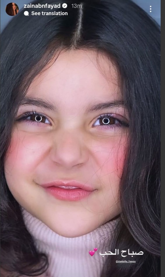 نشرت زينب فياض ابنة الفنانة هيفا وهبي صورة عبر خاصية “الستوري” على حسابها الخاص على تطبيق انستغرام لابنتها الصغرى دانييلا.