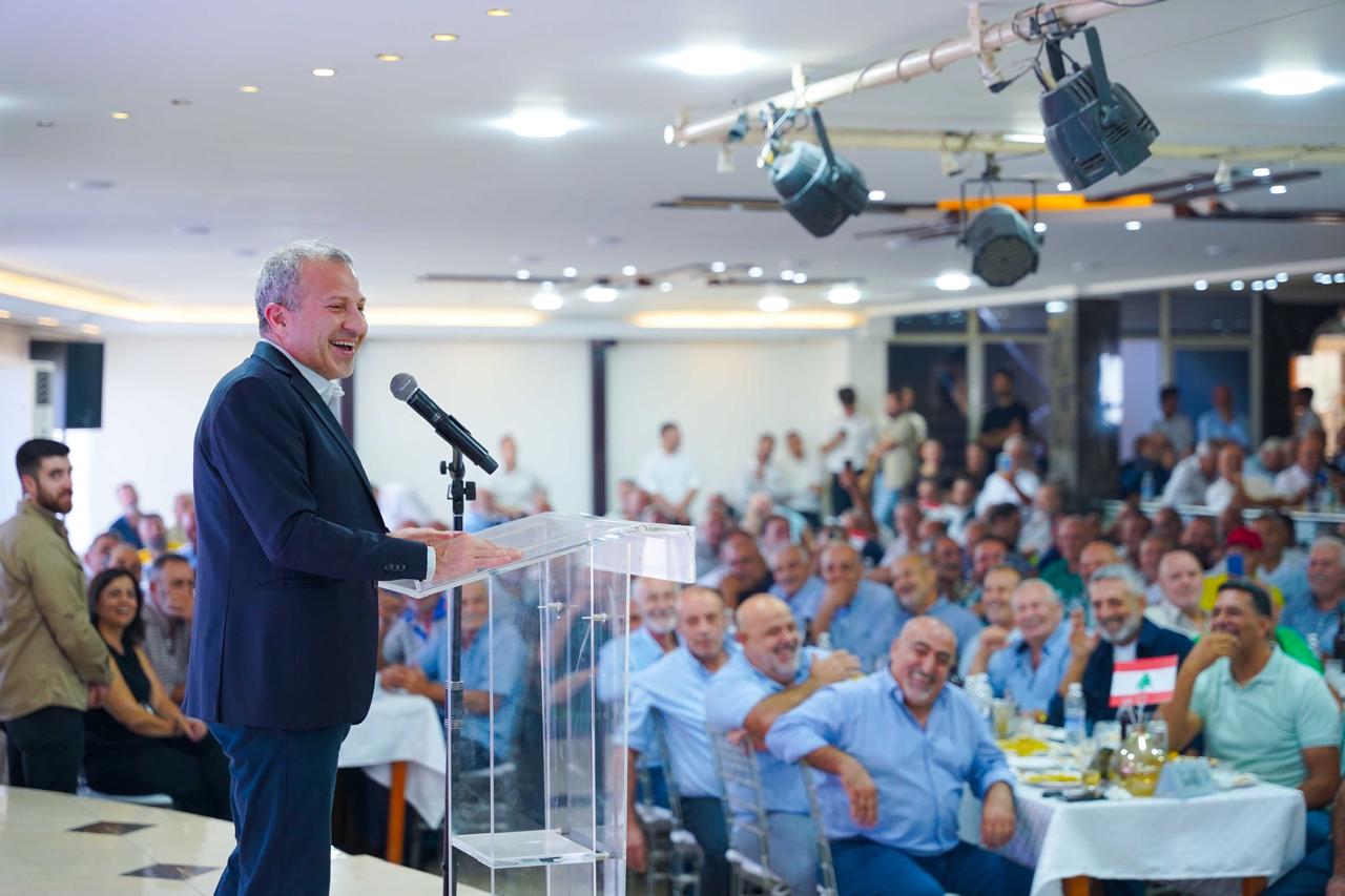 وألقى رئيس التيار الوطني الحر النائب جبران باسيل كلمة في المناسبة، أكّد فيها أن اللقاء “ليس فقط لقاء تكريميًا، بل تجسيد لمعنى الوفاء الحقيقي”، وقال: نجتمع على الوفاء وليس على الغداء، فأن تبقوا أوفياء لقضيتكم ومؤسستكم وبلدكم وتياركم هو ما يعطي هذا اللقاء معناه الحقيقي.”