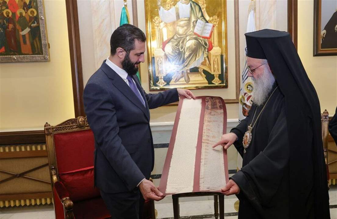 واطلع الشرع خلال الزيارة على أوضاع أبناء الطائفة المسيحية، مؤكداً مع البطريرك حرصهما على تعزيز القيم الوطنية وترسيخ التلاحم بين مكونات الشعب السوري.