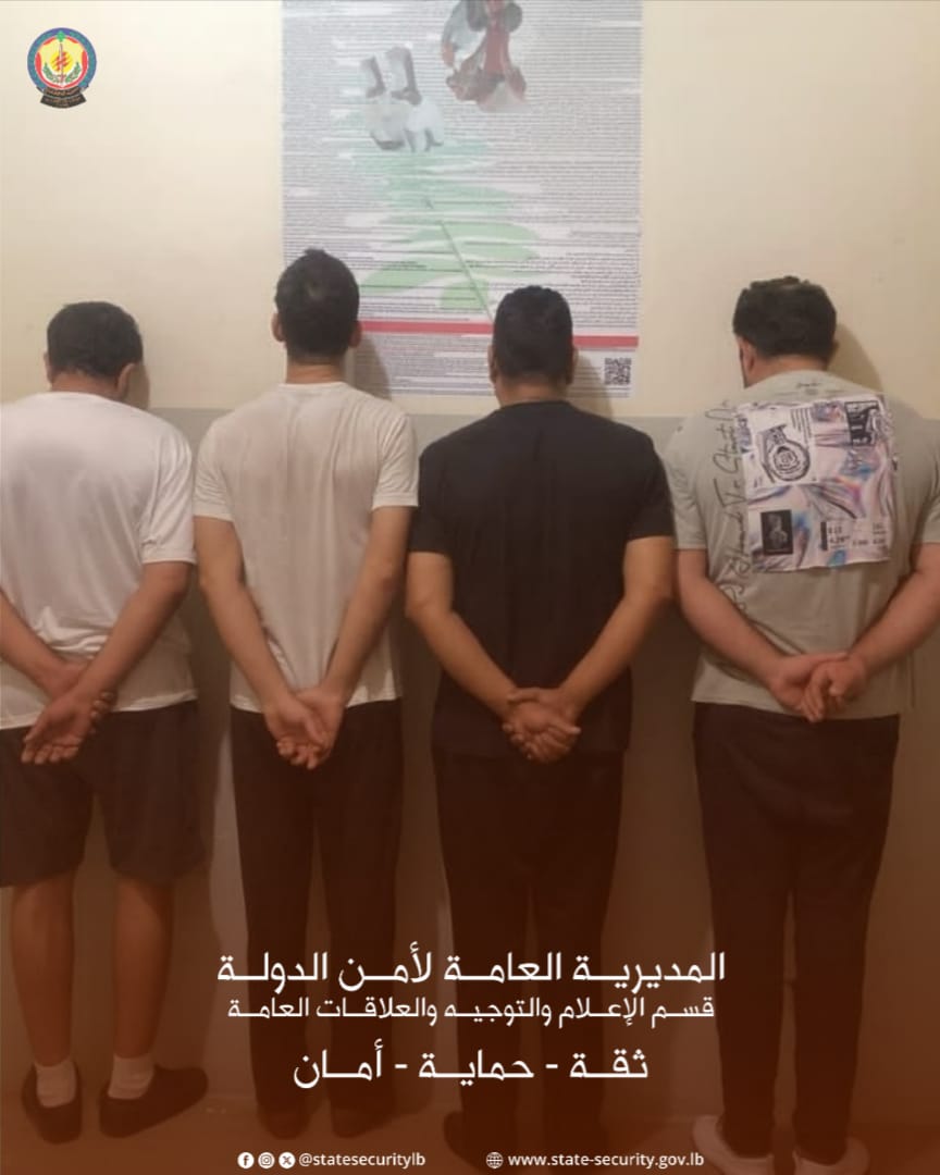 “متابعةً لمهام المديرية العامة لأمن الدولة في ملاحقة المخالفات القانونية في الدوائر الرسميّة وبعد توافر معلومات دقيقة، تمكنت مديرية جبل لبنان الإقليمية – مكتب بعبدا من توقيف أربعة أشخاص، أحدهم من جنسية عربية كان يعمل سمسارًا في الدوائر العقارية في بعبدا، أقدموا على تزوير وثيقة وفاة في دائرة نفوس بعبدا، بهدف إتمام عملية حصر إرث غير قانونية والاستيلاء على عقار وبيعه بطريقة احتيالية.