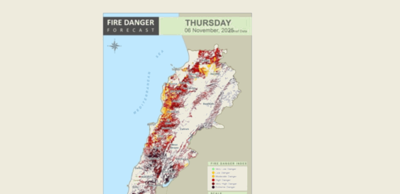 حذر مدير برنامج الأراضي والموارد الطبيعية في جامعة البلمند جورج متري من مخاطر الحرائق اليوم. ونشر خارطة عن المناطق الأكثر عرضة للحرائق، وأرفقها بتعليق جاء فيه:”مع اشتداد حدة موسم الجفاف يواجه لبنان وبخاصة اليوم خطرا مرتفعا جدا لإندلاع وانتشار الحرائق وبخاصة في القسم الجنوبي منه”.