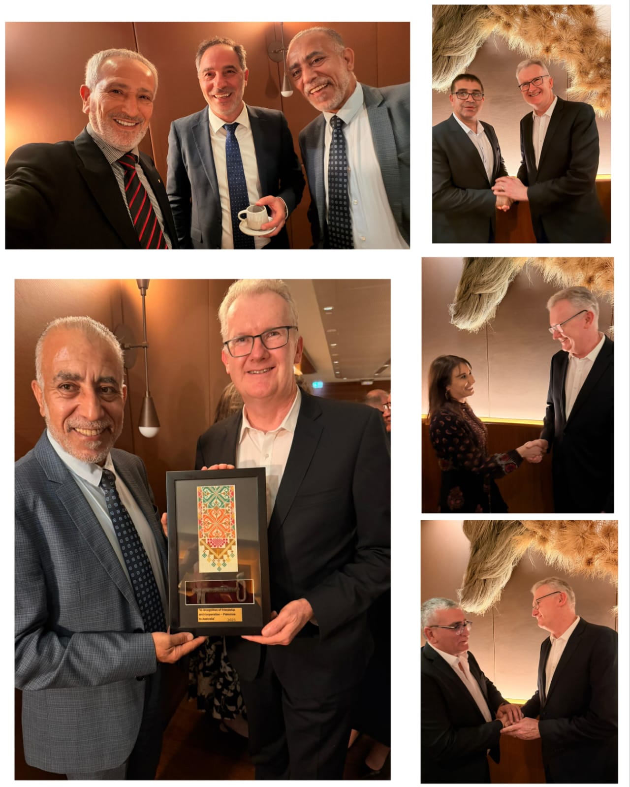 وفي حفل عشاء دعا له الدكتور جمال ريفي بمدينة سدني للترحيب بالوفد الطبي الفلسطيني حضره مجموعة من النخب المجتمعية في الجالية العربية والفلسطينية، على رأسهم الحاج علي ديب من بيت زكاة، ومنير محاجنة رئيس الهيئة الإدارية لمؤسسة جذور، وذلك في جو عائلي مميز، شمل الحضور كل الأجيال الفلسطينية بعضها قدم لاستراليا منذ منتصف السبعينيات من القرن الماضي وبعضها جاء حديثا من قطاع غزة، كما شمل الحضور على عدد من الجيل الثالث من أبناء الجالية الفلسطينية.