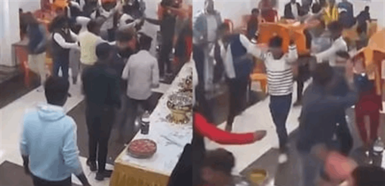 تحوّل خلاف على الحلوى في حفل زفاف بأحد فنادق بود جايا في الهند، إلى اشتباك عنيف بين عائلتي العروس والعريس، بعد جدل حول نقص حلوى الرا سجولا، بحسب ما أظهرته كاميرات المراقبة.