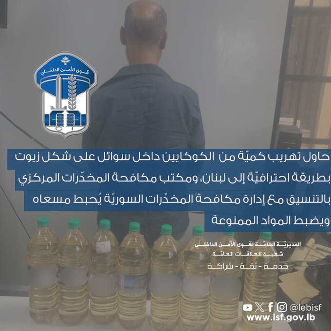 الذي كان يخطّط لعملية تهريب كميّة من الكوكايين داخل سوائل على شكل زيوت من إحدى الدّول الإفريقية إلى لبنان عبر دمشق الدّولي