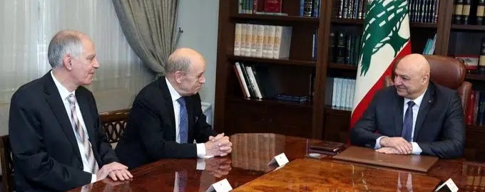 وكان الموفد الفرنسي جان إيف لودريان استهل نشاطه في لبنان بعد وصوله عصر أمس من قصر بعبدا، حيث التقى، يرافقه السفير الفرنسي هيرفيه ماغرو، رئيس الجمهورية جوزف عون قبيل سفر عون ووفد وزاري مرافق اليوم إلى سلطنة عمان. وأفادت معلومات بعبدا الرسمية أن لودريان أثنى على خطوة رئيس الجمهورية بتعيين السفير سيمون كرم رئيساً للوفد المفاوض في لجنة الميكانيزم، وجرى خلال اللقاء البحث في التطورات الميدانية في الجنوب والمستجدات الداخلية إضافة إلى التحضيرات لإمكان انعقاد مؤتمر دعم الجيش اللبناني المفترض عقده بداية السنة المقبلة.