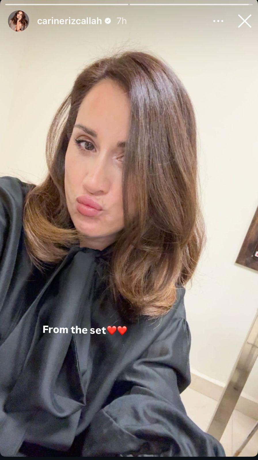 نشرت الممثلة كارين رزق الله صورة جديدة عبر خاصية “الستوري” على حسابها الرسمي في “إنستغرام”، ظهرت فيها بإطلالة أنيقة وتركت تعليقًا بسيطًا قال: “From the set” مع قلبين أحمرين، في إشارة إلى تصويرها الحالي لأحد مشاريعها الفنية.
