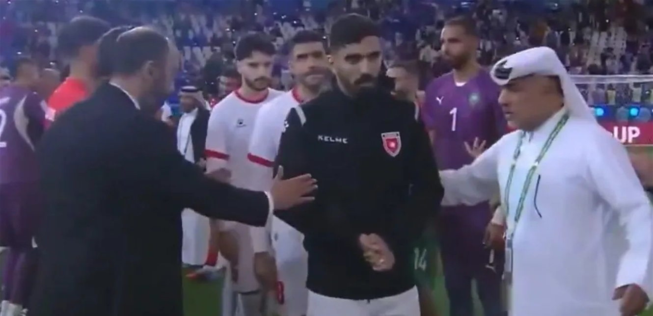 ورصدت الكاميرات موقفًا لافتًا عندما رفض لاعبان من المنتخب الأردني، حسام أبو الدهب وسالم عبيد، مصافحة السكتيوي أثناء مرورهم، إذ حاول المدرب مصافحة أبو الدهب قبل أن يواصل الأخير طريقه نحو منصة التتويج دون الرد على السلام.