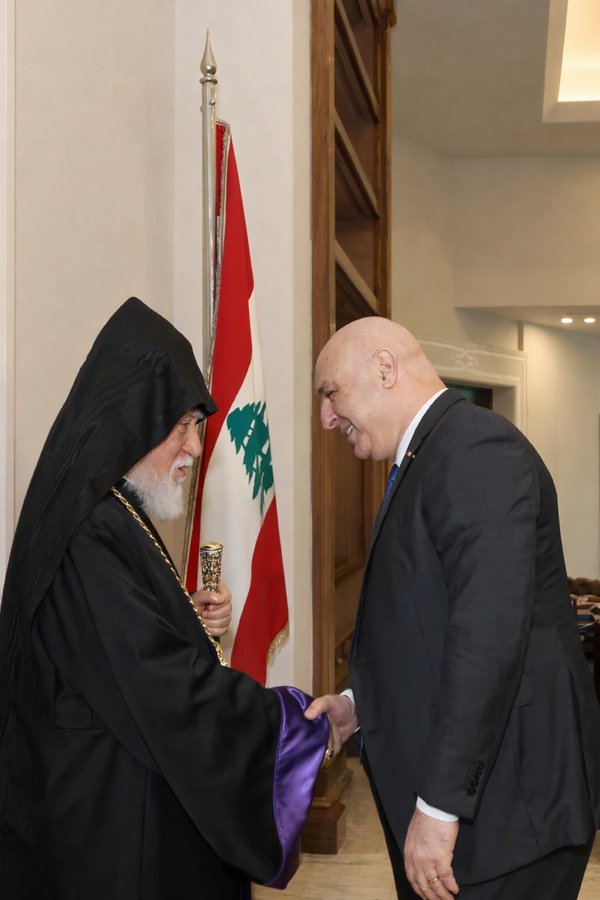 استقبل رئيس الجمهورية العماد جوزاف عون كاثوليكوس الأرمن الأرثوذكس آرام الأول كيشيشيان، في زيارة تهنئة لمناسبة الاعياد.