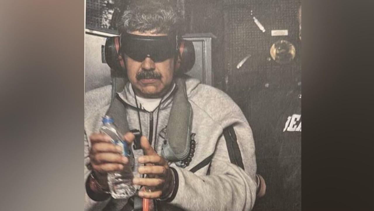 وظهر الرئيس الفنزويلي في الصورة بملابس رياضية، معصوب العينين ومكبل اليدين، بينما حمل قنينة مياه صغيرة.