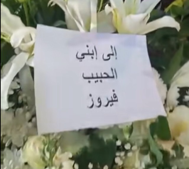 وأهدت السيدة فيروز ابنها هلي باقة ورد بيضاء في يوم وداعه الأخير كتب عليها إلى “ابني الحبيب”.