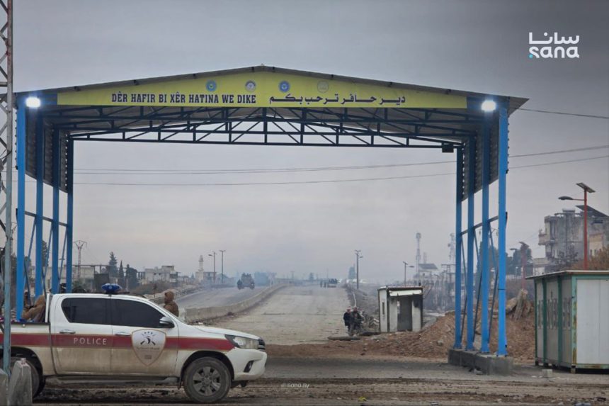 وقالت مصادر محلية في منطقة دير حافر لـوكالة الأنباء الألمانية (د ب أ): “يلف المدينة هدوء مع دخول توقيت سحب قوات قسد من المدينة باتجاه مدينة الرقة، ولم يلحظ تحرك للقوات”.