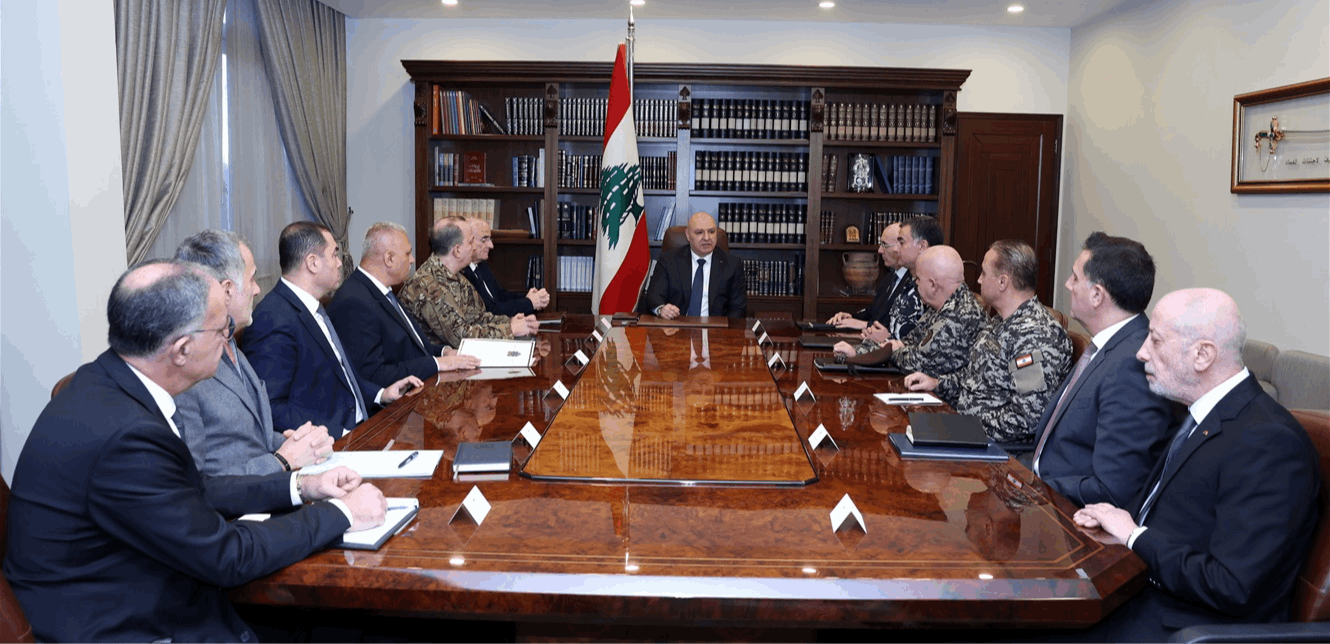 وكان الرئيس عون رأس اجتماعاً أمنياً، وأفادت رئاسة الجمهورية بأن عون “شكر عون الأجهزة الأمنية على الجهود التي بذلتها خلال العام الماضي لبسط سلطة الدولة على أراضيها كافة وتأمين الاستقرار”، لافتاً إلى أن تحسن الوضع الاقتصادي يعود إلى الاستقرار الأمني الذي تحقق في الأشهر الماضية، منوهاً خصوصاً بالتدابير التي اتخذتها الأجهزة الأمنية خلال زيارة البابا ليو الرابع عشر إلى لبنان، والتي كانت أحد العوامل الأساسية لنجاح الزيارة.
