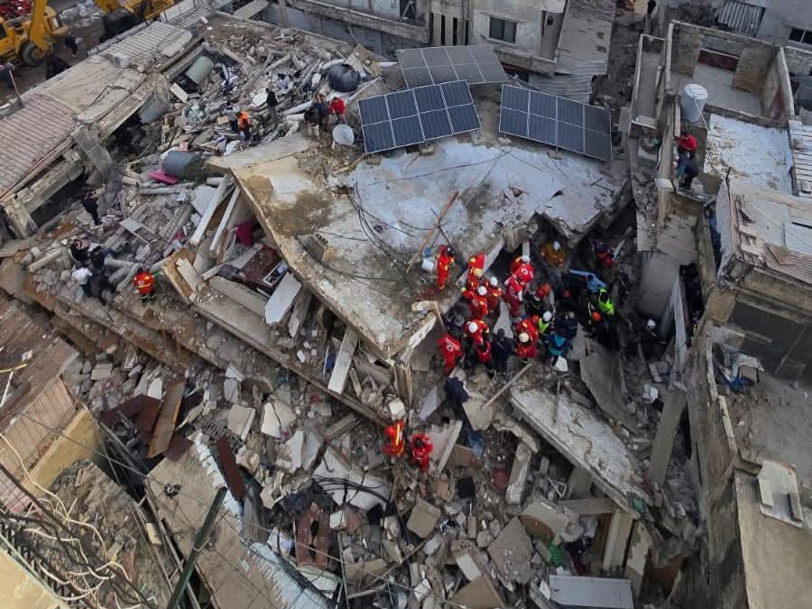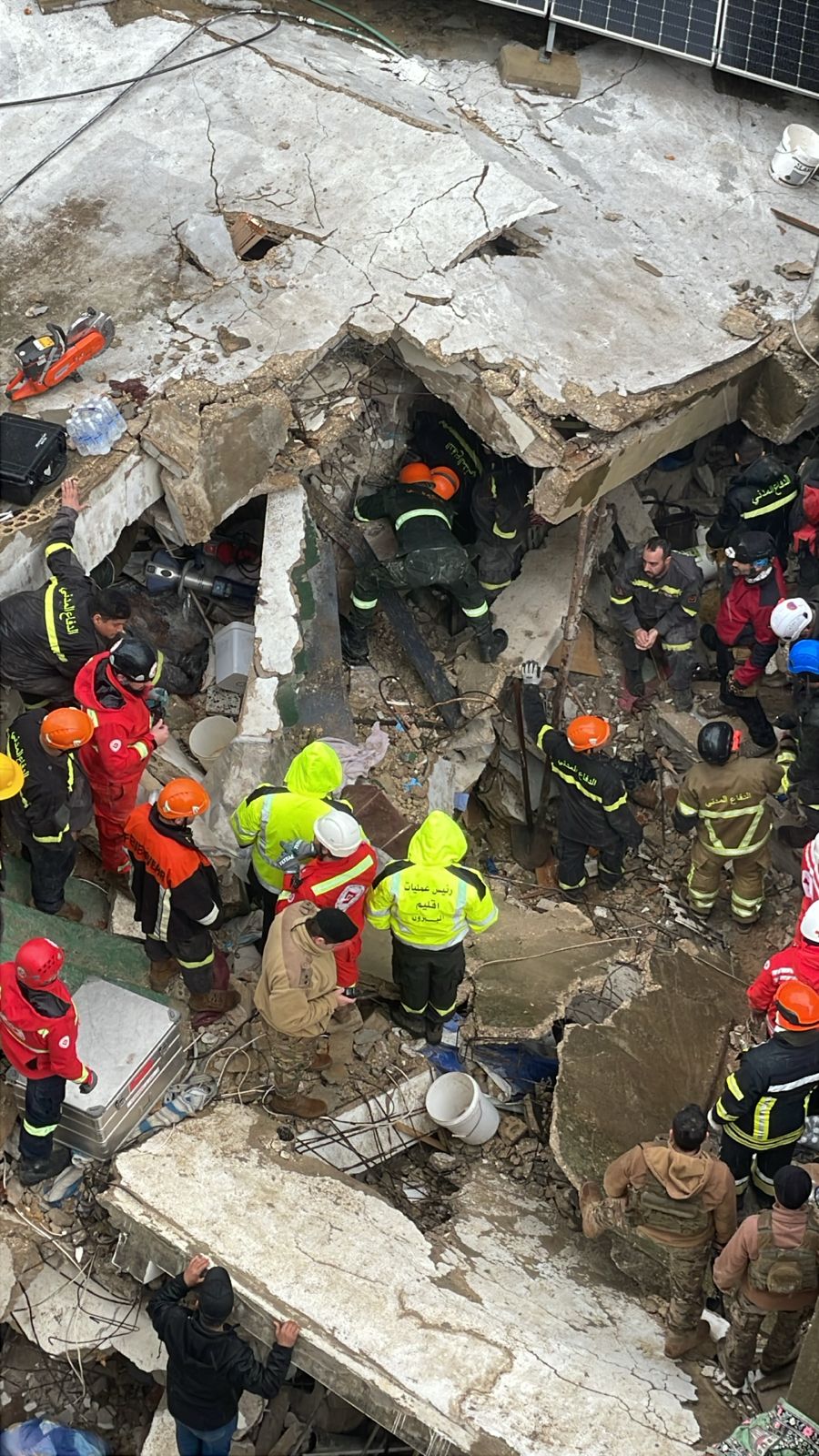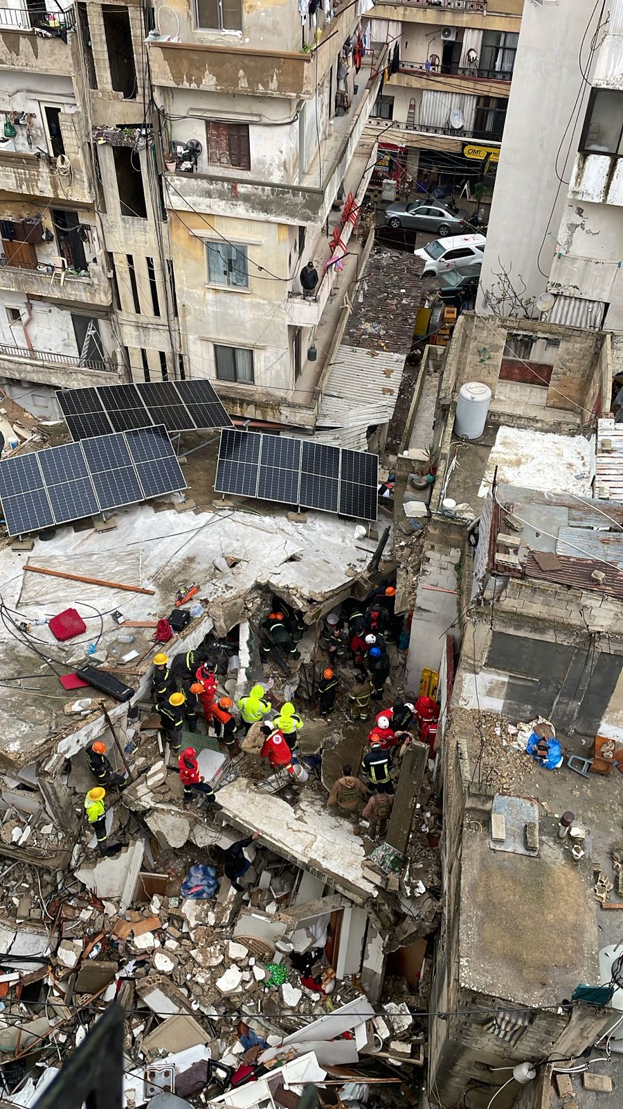 وأعلن الصليب الأحمر اللبناني أنه، وعلى إثر انهيار المبنى، تحركت فرق الصليب الأحمر إلى الموقع مدعّمة بـ6 سيارات إسعاف وفريق متخصص في البحث والإنقاذ، حيث تمكّنت الفرق من سحب امرأة على قيد الحياة ونقلها إلى إحدى مستشفيات المنطقة لتلقي العلاج.