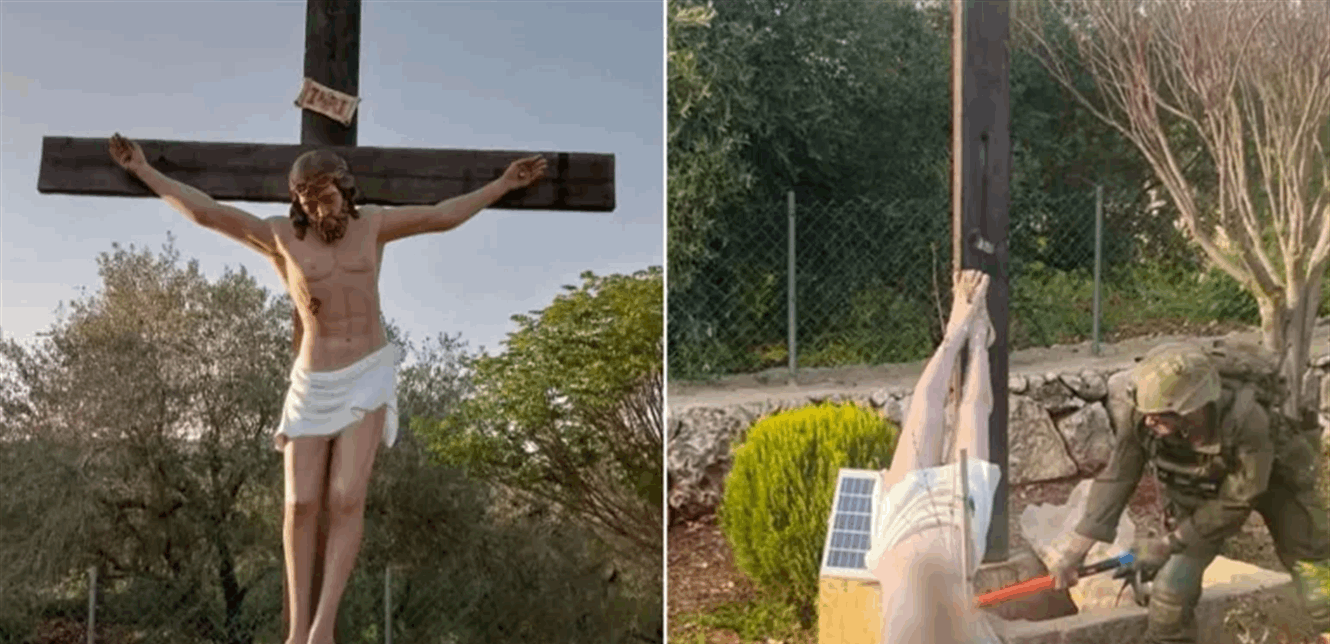 وكانت قد أشعلت لقطة مصورة لجندي إسرائيلي وهو يهشم رأس تمثال لـ “السيد المسيح” بمطرقة، بعد إسقاطه من موقعه في قرية بجنوب لبنان، موجة غضب عارمة على منصات التواصل، وعقب تشكيك أولي في صحة الصورة، أقر الجيش الإسرائيلي بمسؤولية جنوده عن هذا الانتهاك بعد تحقيق رسمي.