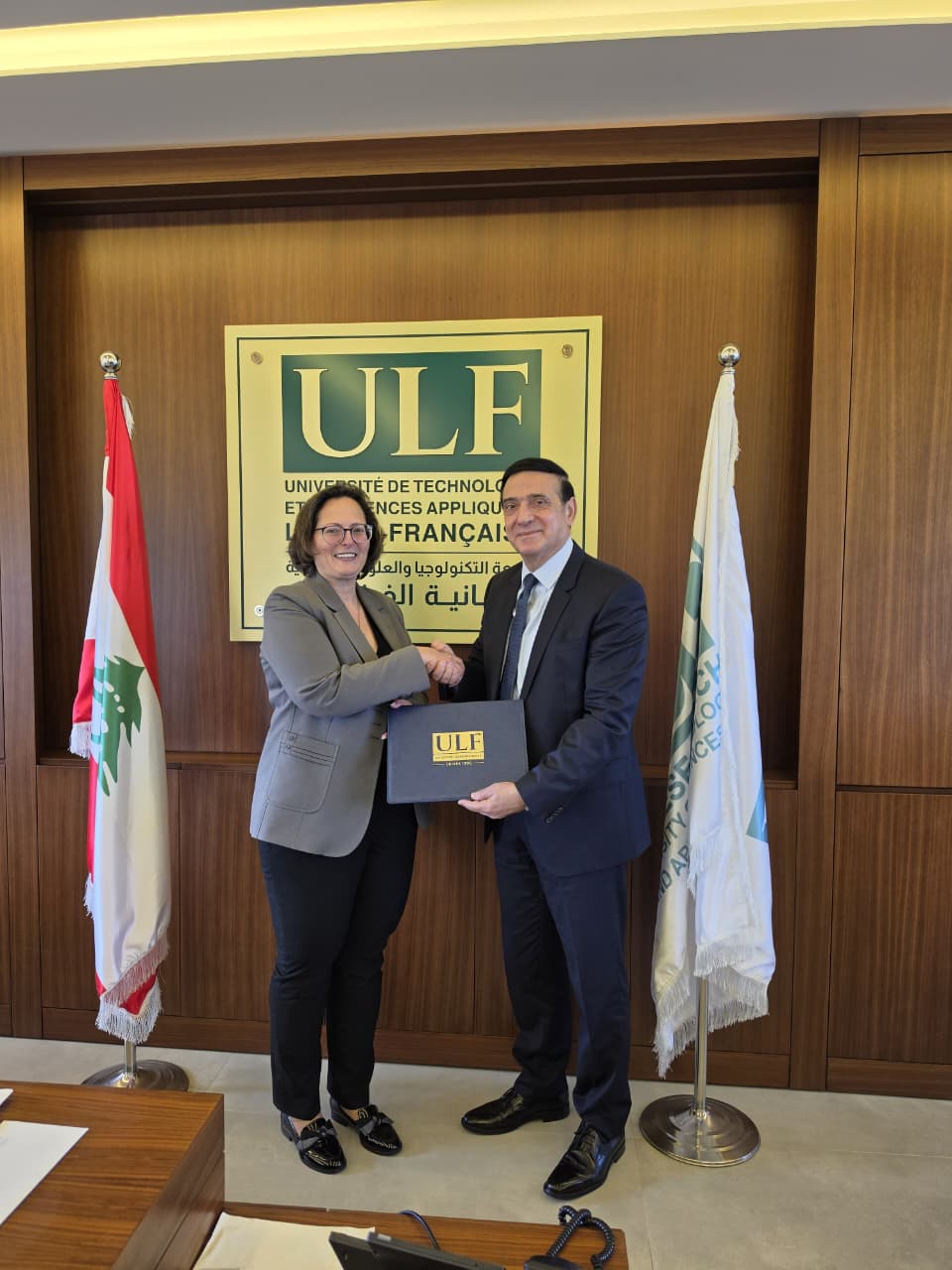 في إطار تعزيز التعاون الأكاديمي والتربوي، وقّع رئيس الجامعة اللبنانية الفرنسية معالي الدكتور ميشال نجار، بحضور نائب الرئيس للشؤون الأكاديمية وعميد كلية الآداب والعلوم الدكتور وليد مبيض ونائب الرئيس لشؤون التنمية وعميد كلية الهندسة الدكتور أسامة جدايل، مذكرة تعاون مع مدرسة International School Al Koura ممثلة بمديرة المدرسة السيدة ريما نبوغ نصر، يرافقها السيدة ريما جرجس مستشارة التوجيه المهني و السيد جوزيف خرما المسؤول الرياضي.