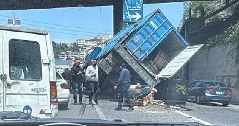 جريح في انقلاب شاحنة على أوتوستراد نهر إبراهيم