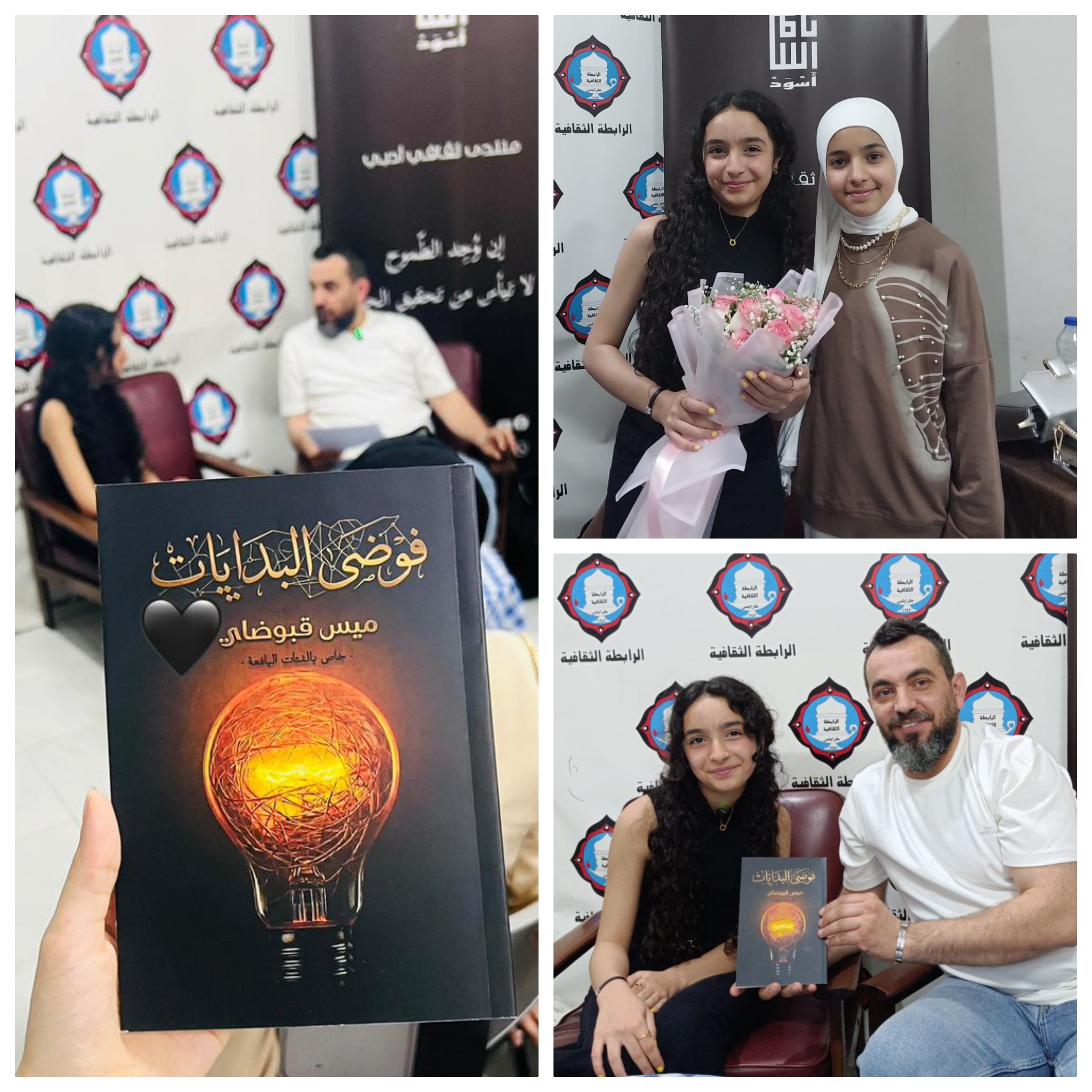 ضمن نشاطات معرض الكتاب ال ٥٢ قدّم منتدى أَسْوَدْ الأدبي يوم أمس الأحد مفاجأة مدويّة حيث، وقّعت منتسبة المنتدى ميس قبوضاي ذات ١٣ سنة كتابها الأول “فوضى البدايات” ويعدّ هذا الحدث فريدا من نوعه كونها أصغر كاتبة في تاريخ المعرض.