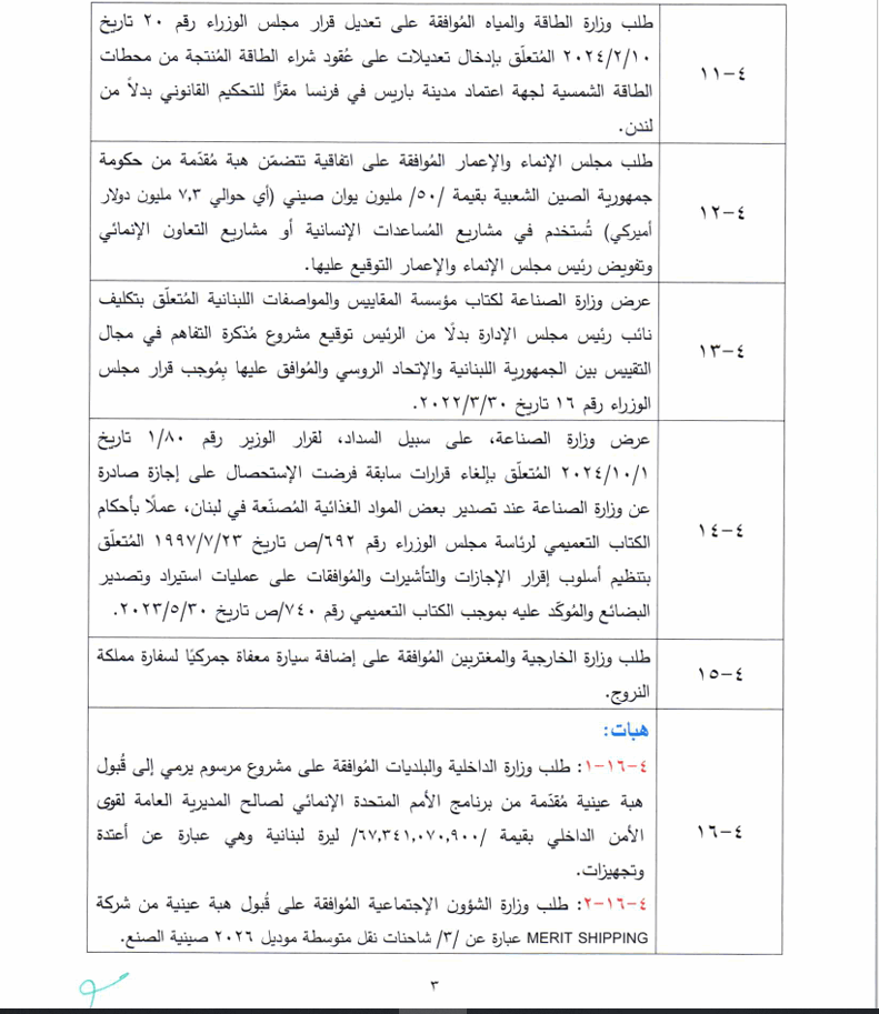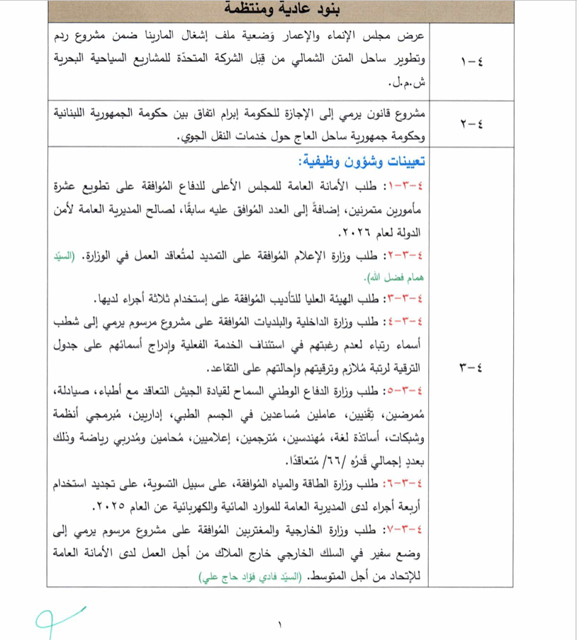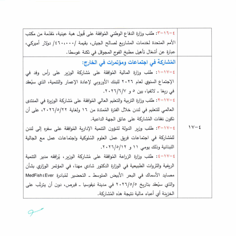 يعقد مجلس الوزراء جلسة نهار الخميس المقبل في القصر الجمهوري، الساعة الثالثة بعد الظهر.