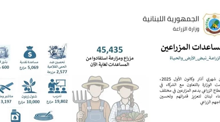 أعلنت وزارة الزراعة في بيان، انه” وفي إطار التزامها بدعم القطاع الزراعي وتعزيز صمود المزارعين وتحسين الإنتاج الزراعي استفاد 45,435 مزارعًا ومزرعة من المساعدات الزراعية المختلفة بين شهري آذار وكانون الأول 2025، وذلك بالتعاون مع الشركاء المحليين والدوليين وفي مختلف المناطق اللبنانية“. وأوضحت الوزارة “أن هذه المساعدات تنوّعت لتشمل برامج دعم مباشرة ومدخلات إنتاج وتدريب […]