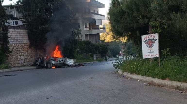 استهدفت طائرة مسيرّة إسرائيليّة، سيارة على طريق عام شوكين – النبطية.
